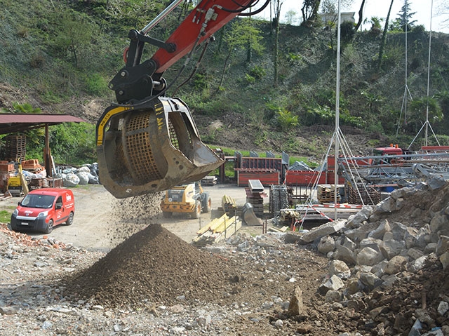 E’ proprio utilizzando in combinata i due prodotti MB – benna frantoio e vagliante – che Fabris Scavi è riuscito a ottenere il ciclo completo del riciclaggio: riduzione volumetrica, pulizia del materiale e riutilizzo il loco.