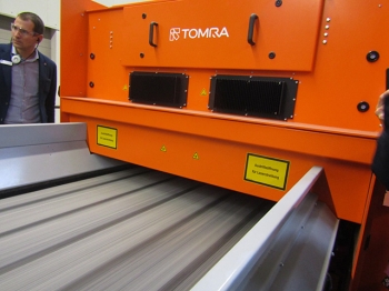 In another Test Center demonstration, TOMRA explained its enhanced LIBS (laser-induced breakdown spectroscopy) sorting technology. By employing a laser, which can monitor the entire width of the belt, this has the unique advantage of eliminating the complex and costly need to separate materials into single lanes. This enables the sorting and separation of different aluminum wrought alloys with unprecedentedly high levels of efficiency, achieving sorting accuracies of 99% purity (or greater) with high throughputs of three to seven tons per hour.