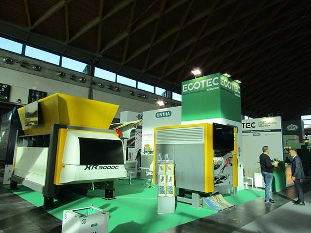 Lo stand Ecotec Solution è stato studiato per dare il giusto risalto ad ognuno dei marchi distribuiti in esclusiva dall'azienda: Untha, Pronar, Ecotec e Binder. Infatti l'ultima novità Ecotec Solution è stato proprio l'annuncio della collaborazione con Binder+Co, un marchio molto conosciuto nel settore recycling.