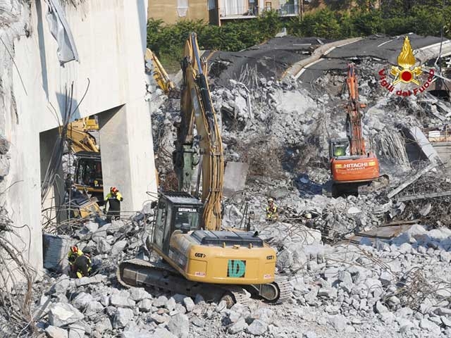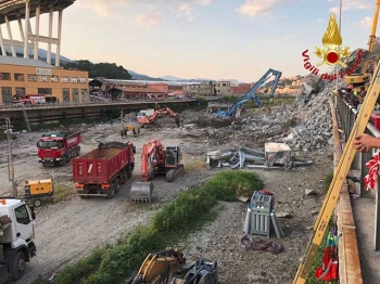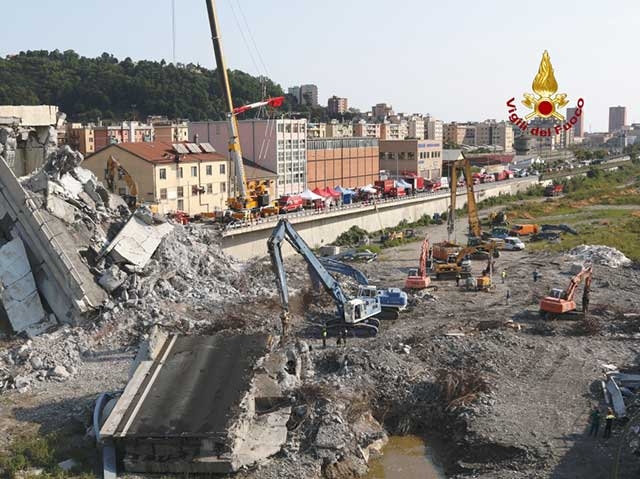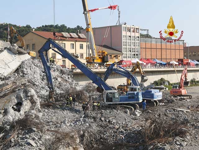 Proseguono incessantemente le operazioni di bonifica, ricerca, e messa in sicurezza del ponte Morandi a Genova.
