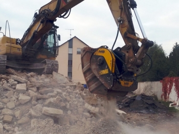 Mattone, cemento, malta, tufo, marmo. La benna frantoio MB Crusher trasforma i sassi in pezzature diverse, a seconda di quello che richiede il cantiere. Se necessario, un deferrizzatore installato sulla benna separa l’inerte dal ferro. E durante l’operazione, il nebulizzatore riduce le polveri della frantumazione a beneficio degli operatori.