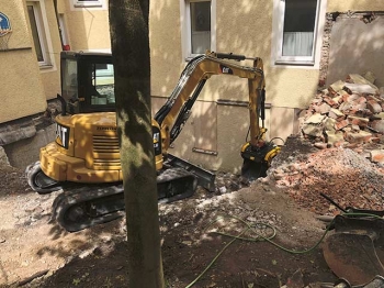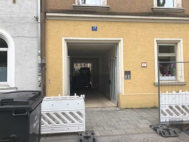 E così è successo al civico 45, dove l’azienda tedesca Stöger Baggebetrieb, specializzata in ristrutturazioni civili, è intervenuta per costruire una nuova parte dell’edificio, demolendo parte del cortile interno per realizzare le nuove fondamenta.