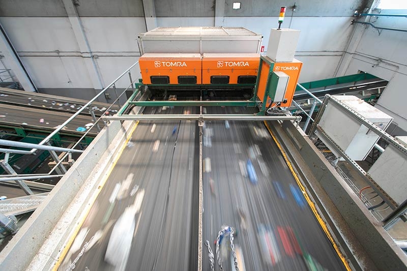 Le macchine AUTOSORT di TOMRA Sorting Recycling a sensori spettrometrici abbinano sensori NIR (lunghezze d’onda vicino all’infrarosso) e VIS (lunghezze d’onda nel campo del visibile) in un sistema di selezione universale modulare che consente di riconoscere e separare con esattezza e alla massima velocità una gran quantità di materiale, in base al tipo e alla composizione, ottenendo frazioni di elevata purezza. All’interno dell’impianto, la tecnologia NIR consente la selezione dei polimeri e quella VIS la selezione dei colori.