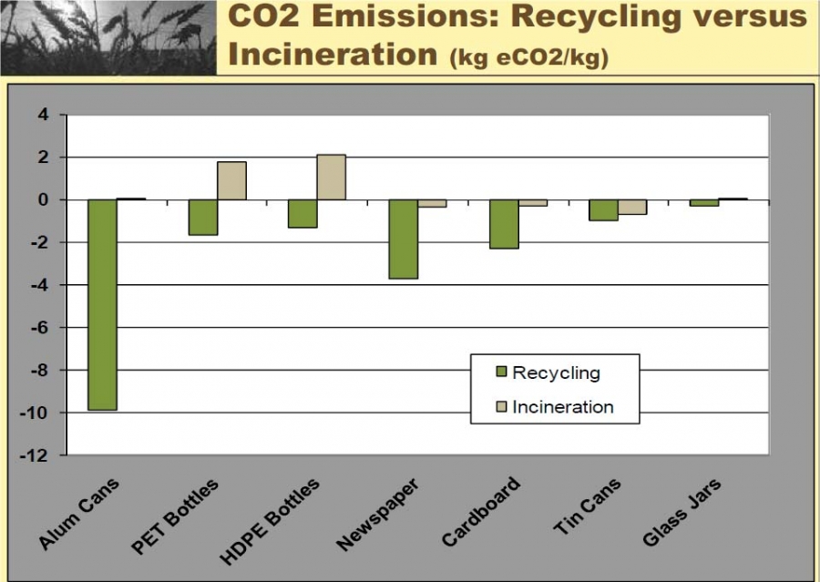 Inoltre le emissioni di CO2 prodotte dall’incenerimento sono superiori a quelle derivanti dal riciclo dei vari materiali. Per quanto riguarda la plastica, i processi di rigenerazione consentono un’immissione nell’ambiente di circa un decimo di CO2 rispetto ai processi complessivi di produzione dei polimeri vergini.