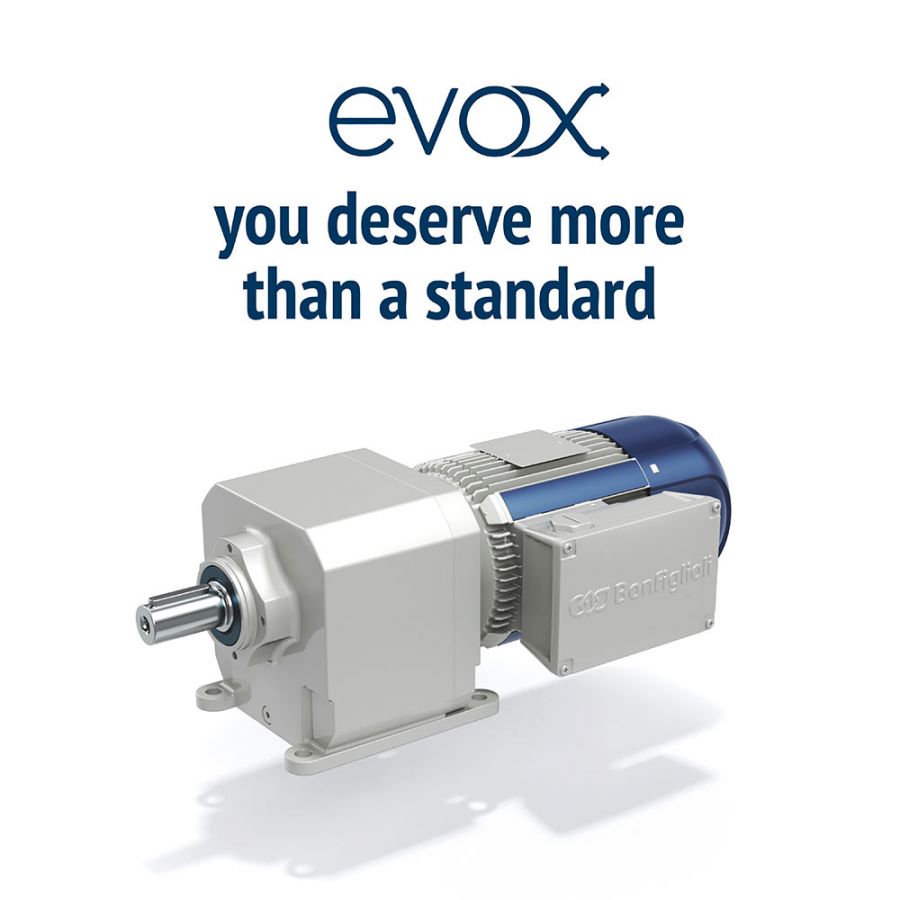 Bonfiglioli, announces the launch of the new helical in-Line geared motor under the newly born EVOX Platform.