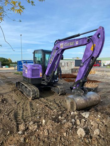 In Francia l'escavatore CASE CX60C è stato verniciato di viola per sensibilizzare la ricerca contro i tumori.