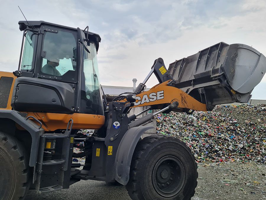 Le pale Case si occupano della gestione e dell’approvvigionamento delle due linee dell’impianto per la selezione del vetro, caricano i cassoni dei camion e tengono in ordine i piazzali. Lavorano 5 giorni a settimana per dieci ore al giorno. Gli operatori, rispondendo alle nostre domande sulla comodità della cabina, sottolineano, oltre al confort della seduta, le vibrazioni minime, l’assenza di rumori e soprattutto la visibilità che si gode dalla cabina. Il vetro ricurvo del parabrezza permette, infatti, di avere una visione completa a 360 gradi garantendo maggiore sicurezza per i palisti e per gli operatori dell’impianto. Inoltre, le macchine presentano una straordinaria facilità di manovra. Le pale Case, oltre all’elevato confort dell’operatore, si caratterizzano anche per i ridotti consumi, grazie al motore a 6 cilindri della macchina.