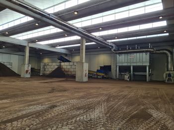 La produzione di compost avviene nella seconda fase, quella aerobica: al materiale in uscita dalla fase precedente vengono aggiunti scarti vegetali provenienti dalla raccolta differenziata del verde opportunamente triturati. Questo processo ha il vantaggio di non produrre scarti liquidi da trattare o da smaltire perché il trattamento avviene con la tecnologia “a secco”. Dopo la miscelazione, il processo di compostaggio aerobico avviene in 20 biocelle servite da areazione forzata ed ha una durata di circa due settimane: al termine, il materiale viene vagliato (vagliatura primaria) ed avviato all’area di maturazione, anche questa servita da ventilazione forzata. Dopo circa 8-10 settimane il prodotto viene ulteriormente raffinato (vagliatura secondaria) ed è quindi pronto per l’utilizzo in agricoltura come ammendante compostato misto.