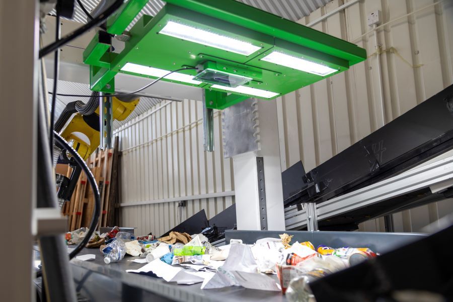 This innovative technology was developed by Recycleye and each unit comprises a camera, LED light modules and a compute unit. The computer vision system scans each piece of waste travelling on the belt and, using proprietary machine learning algorithms, identifies the type of material and object. Artificial intelligence detects using a range of visual characteristics, similar to the human eye.
