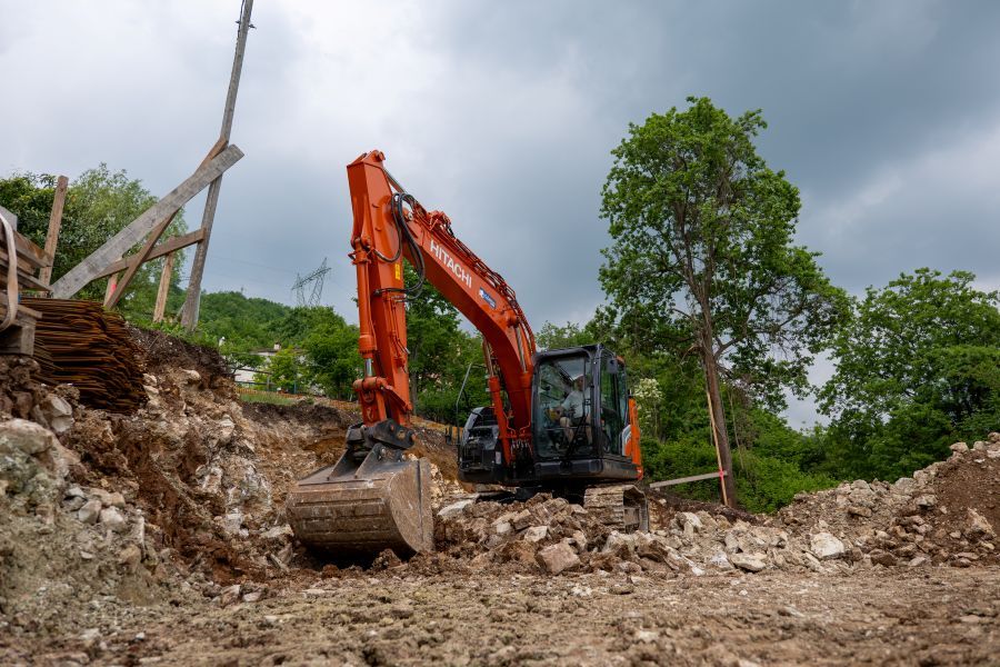 Lo ZX135US-7 DI Hitachi al lavoro con Dolomiti Strade per un nuovo parcheggio nel comune di Lusiana Conco (VI).