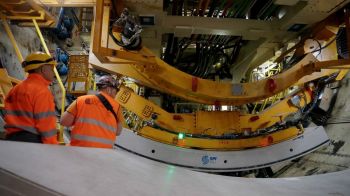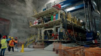 Avviati i lavori della 'talpa', la T.B.M. (Tunnel Boring Machine) per lo scolmatore del Bisagno a Genova. Il macchinario è lungo circa 100 metri su tre livelli e ha un peso complessivo di 1.280 tonnellate.