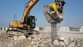 In Moldova, another client is using the BF80.3 crusher bucket, mounted on a CAT 320 GC, to crush demolition waste directly on site.