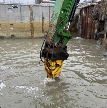 Al centro di questa operazione vi è il martello idraulico Epiroc HB 7000, fornito da SAES International B.V., partner Epiroc per Paesi Bassi e Belgio. Configurato specificamente per lavori subacquei, l’HB 7000 può operare fino a 24 metri di profondità — una capacità rara nel settore.