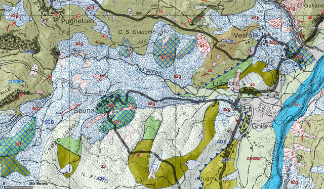 The landslide of Sauna is a complex fall with a prevalent slump component. Some house and farm are deleted by the landslide. Sauna and Capriglio are controlled by Civil Guard and geologists of Emilia-Romagna Region.